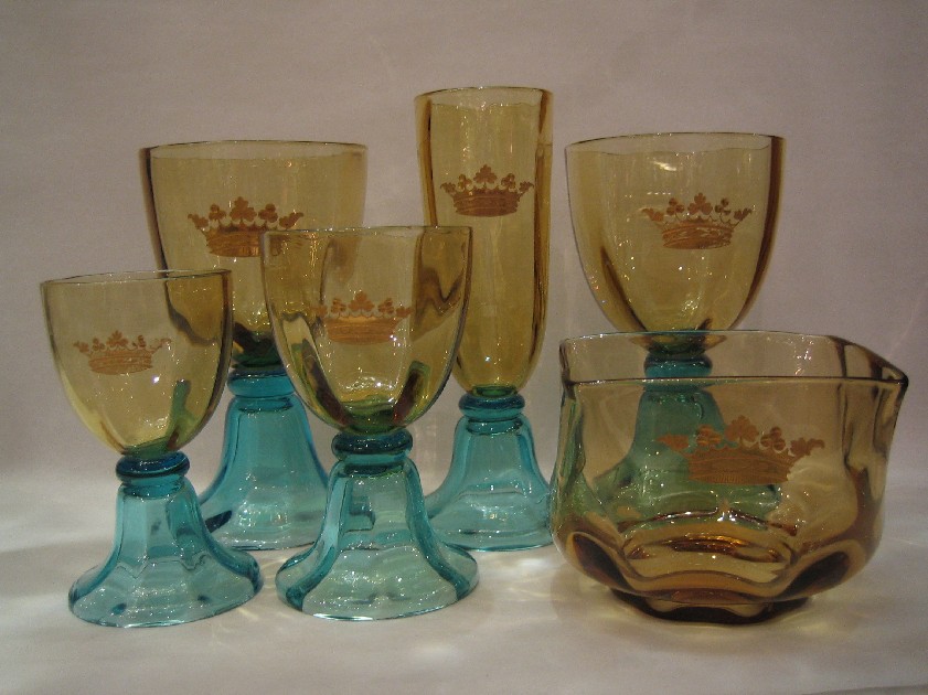 | Important service en cristal de couleurs orné d'une couronne de Marquis gravée et dorée ... |
