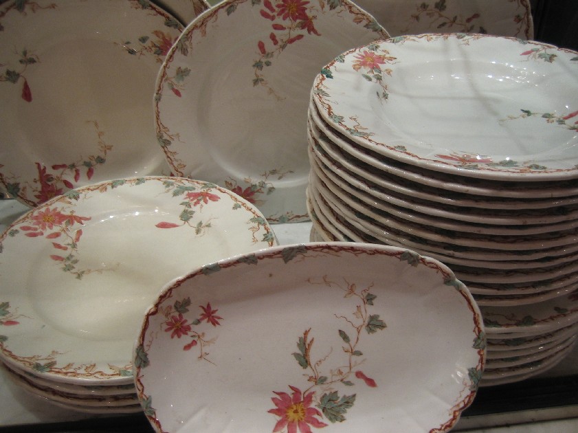 | 15 assiettes plats, 10 creuses, 2 plats ronds, 1 ovale ... |
