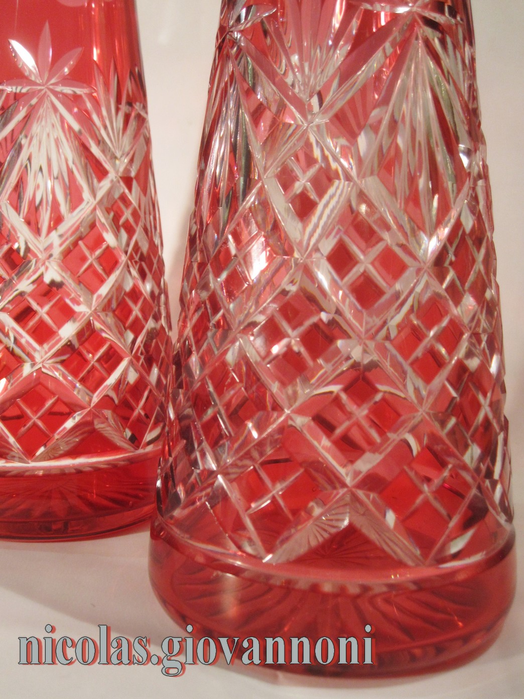 | SAINT LOUIS - Cristal taillé Rouge - Paire de carafes | |