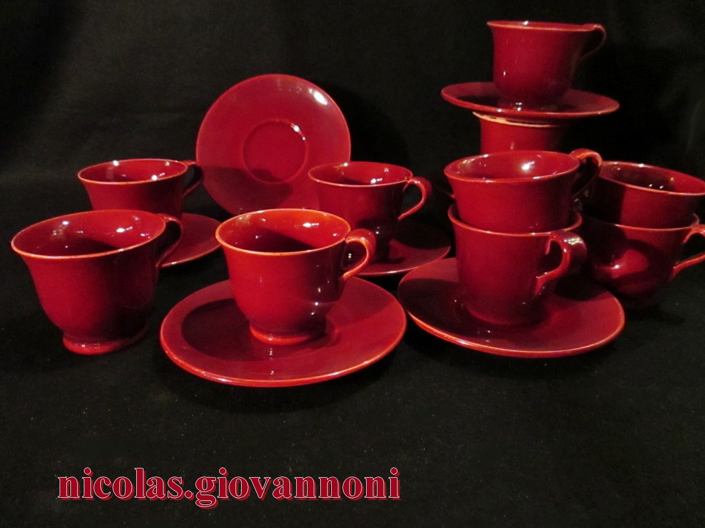 Vallauris - FaÏence Rouge Carmin - 10 tasses à mocca
