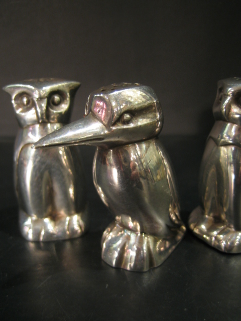 Gallia-Christofle - Oiseau exotique & 2 hibous - 3 salières | |