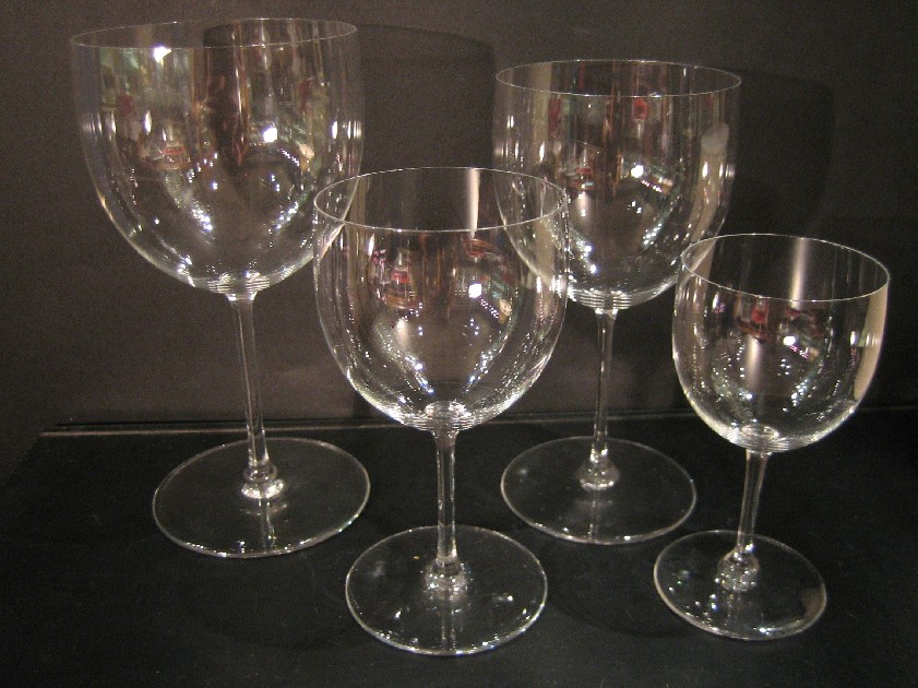12 verres à eau, 12 à vin de Bourgogne, 11 à Bordeaux, 12 coupes à champagne ... |