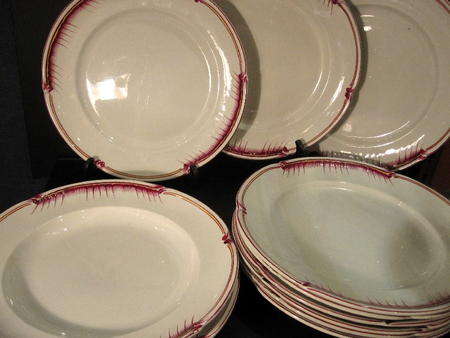 Sarreguemines. - Peigné rouge - 38 plates, 14 creuses | |
