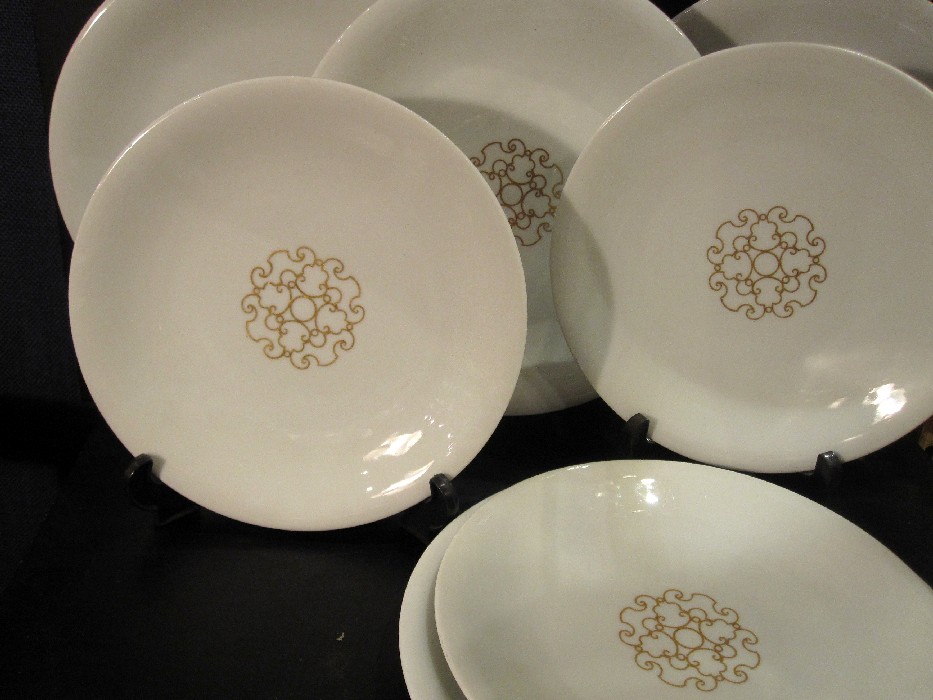 26 assiettes plates, 12 dessert, 14 assiettes à salades demi lune, 2 jattes ... |