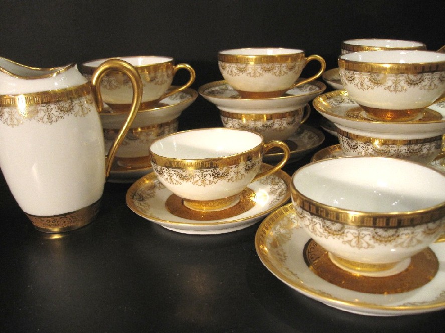 Legrand - Limoges - Or incrusté - 11 tasses à moka.Crémier | |