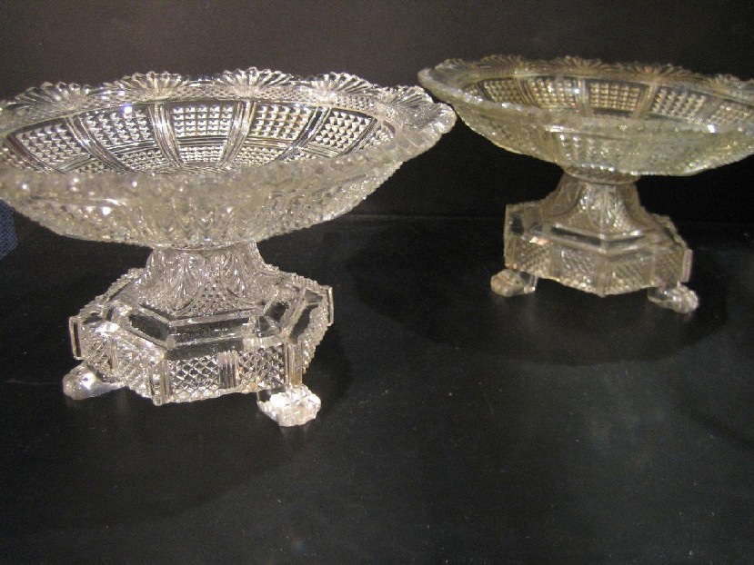 Cristal moulé 19ème - Travail pointes de diamant - Paire de compotiers | |