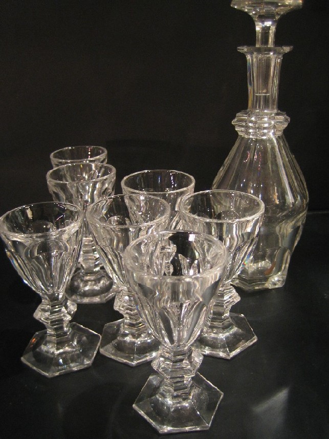 Charmante petite carafe, entourée de 7 verrs à liqueurs à la réalisation très soigné ... |