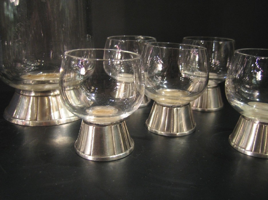 Une carafe et 8 verres.Liqueurs ou vodka....sans modération ... |