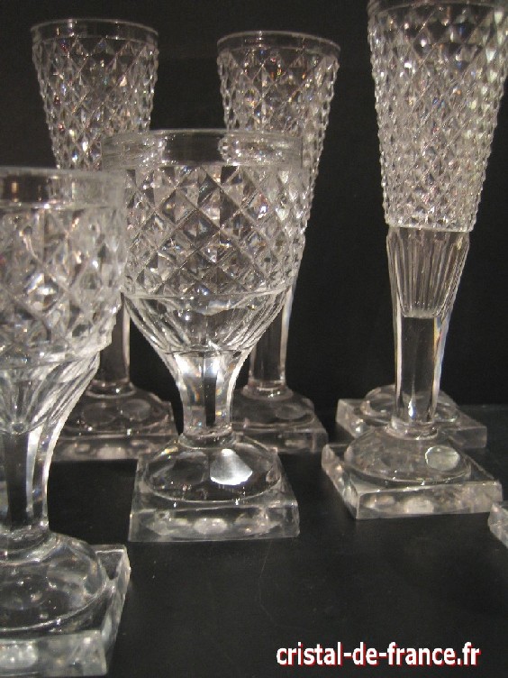 14 flutes, 12 verresà vin rouge, 14 à vin blanc.Quelques infimes éclats à la base carr ... |