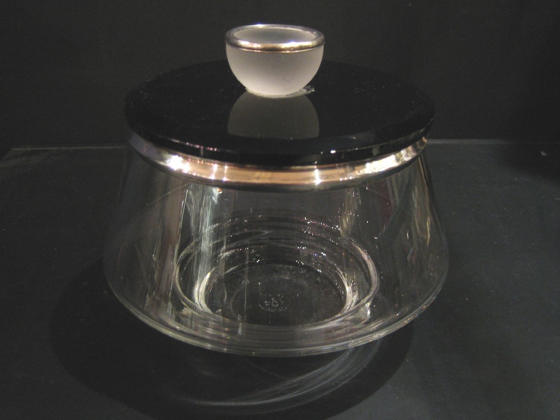 Baccarat. - Opaline noire et cristal - Boite à biscuits Monture argent | |
