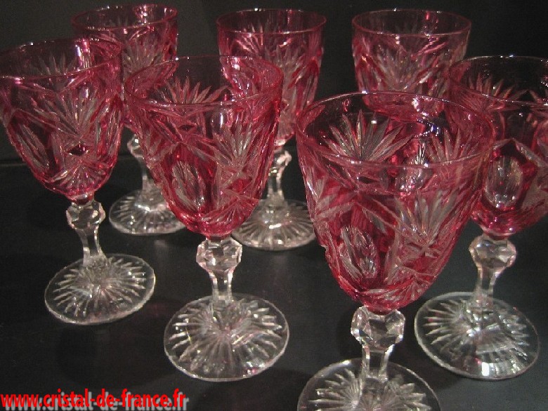 SAINT LOUIS - Cristal doublé rouge - 18 verres à vin du rhin | |