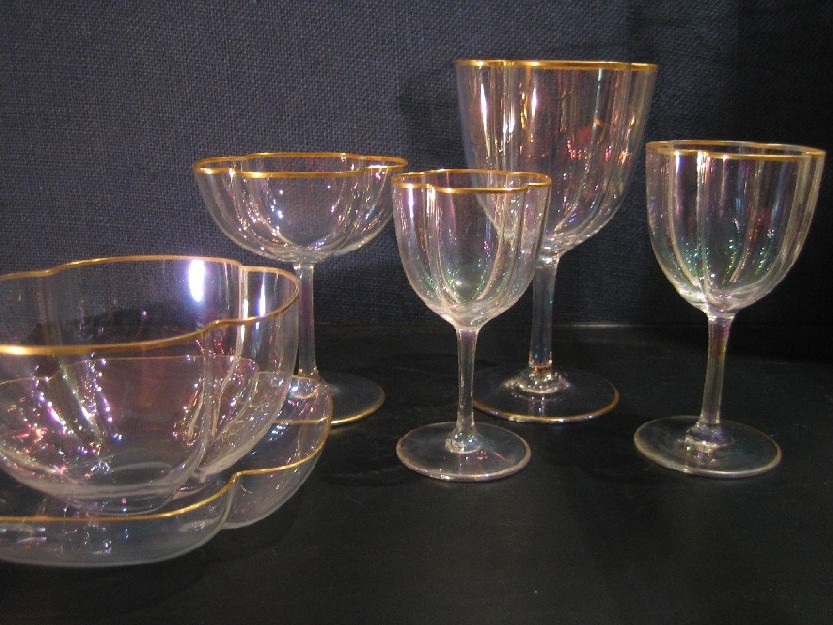 Autriche.1900 - Verre irisé quadrilobé - Service complet.54 pièces | |