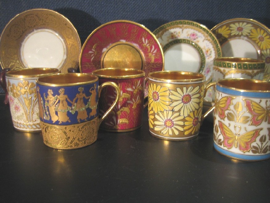 6 tasses au décor réalisé de façon très soigné,l'intérieur peint en or, dont l'écl ... |