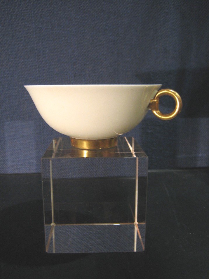 10 tasses en pate ivoire , talon et anses en partie dorés ... |