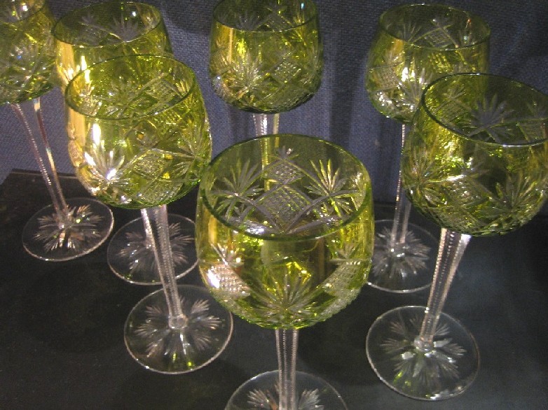 Une série de 12verres à vin du Rhin en cristal doublé vert clair, la couleur idéale po ... |