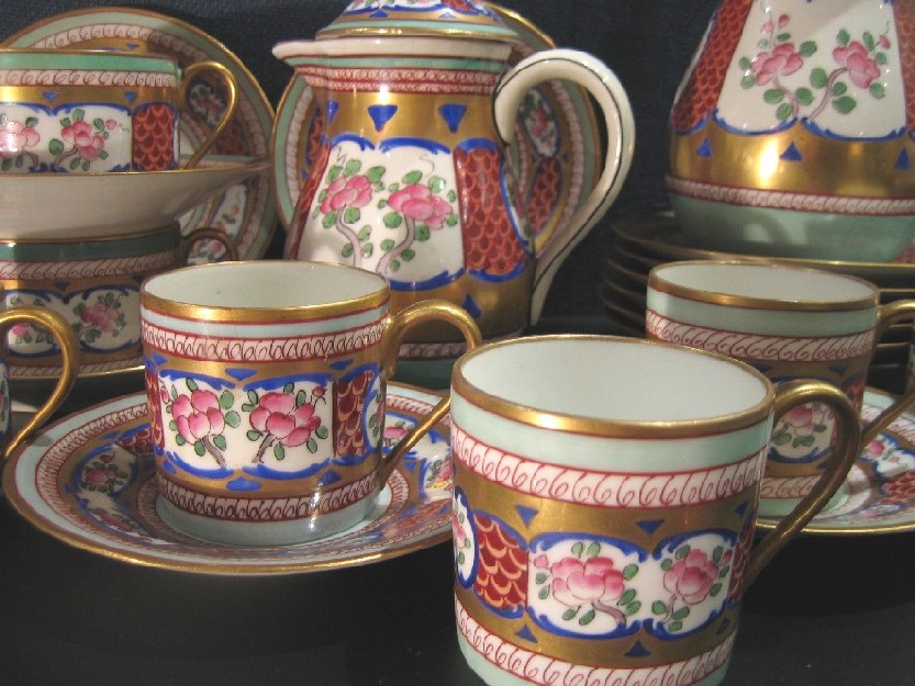 10 tasses à café, 16 tasss à th, 1 verseuse.Vers 1920 ... |