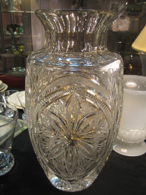 41 cm pour ce grand et lourd vase de forme légèrement applatie, et richement taillé. / ... |