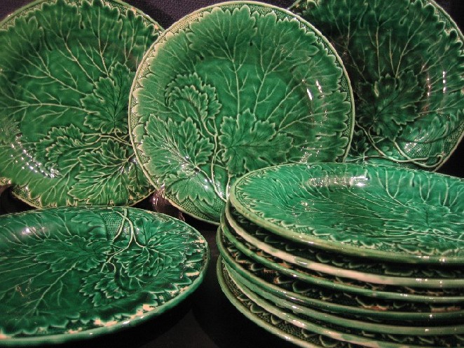 Creil-Montereau - Barbotine verte.1870 - 11 assiettes | |