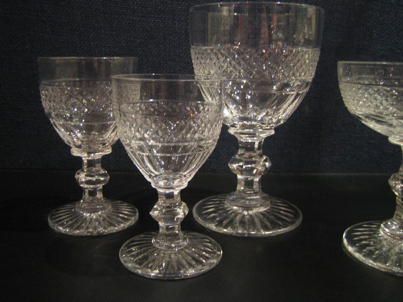 9 verres à eau, 8 à vin rouge, 8 à vin blanc, 10 coupes; 2 carafes--------VENDU---23.03 ... |