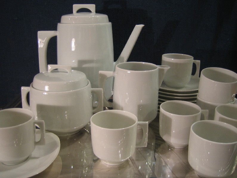 12 tasses, verseuse, crémier sucrier pour ce service très sobre, au dessin très typé d ... |