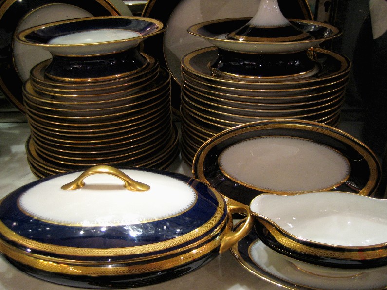 PALLAS-Limoges - Bleu de four et or incrustation - Service 84 pièces | |