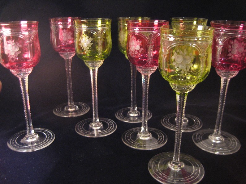 4 verres rouges et 4 verts pour ces fabuleux verres à vin du Rhin.Voyez les 3 photos pré ... |