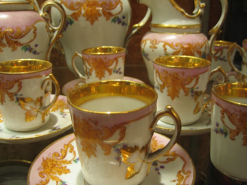 Porcelaine de Paris - Décor Or & fleurs polychromes - Service à café | |