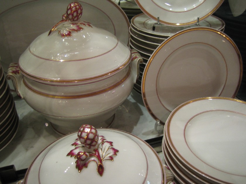 44 assiettes plates, 22 creuses,soupière , légumier, 9 plats ronds, 3 ovales, 3 raviers. ... |