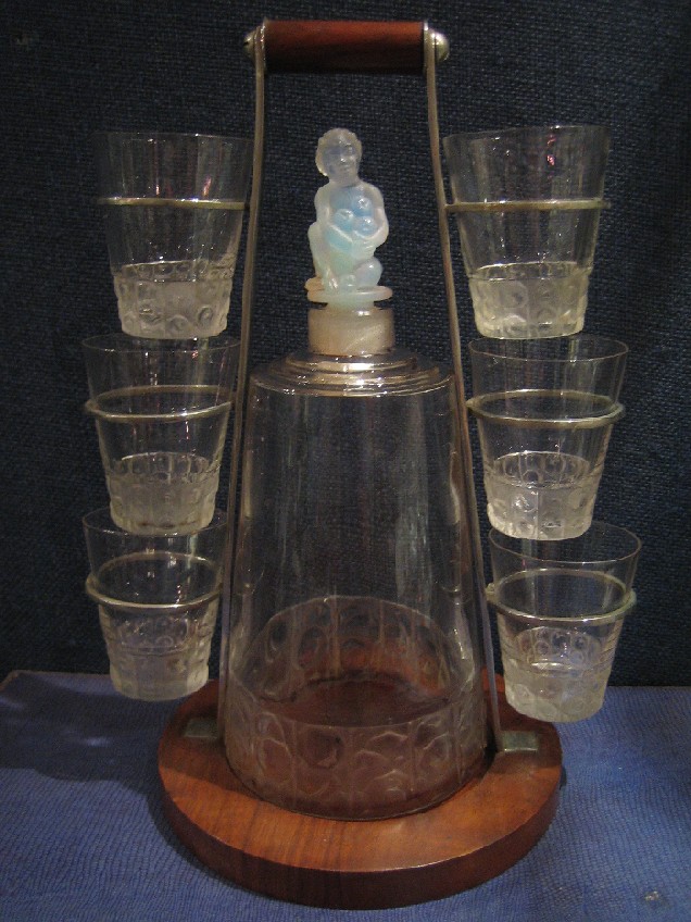 Curieux service à porto et son présentoir, travail des années 30 avec un très joli bou ... |