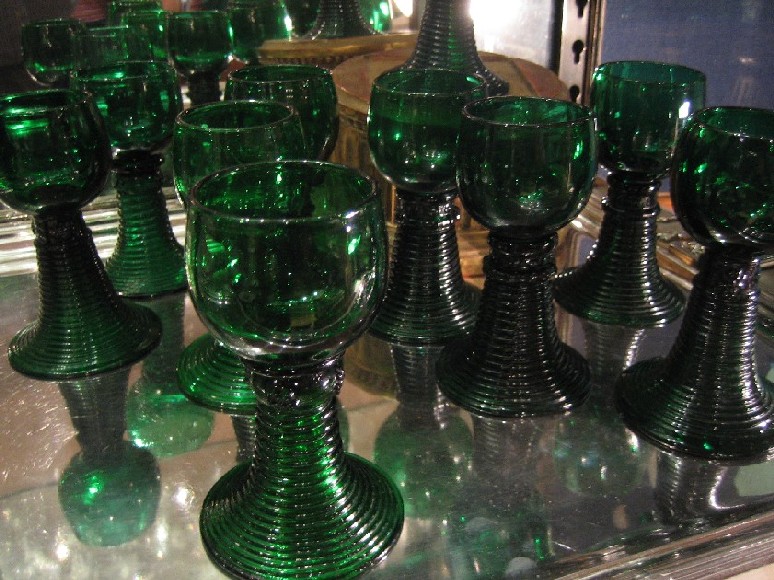 16 rohmer en cristal émeraude très lourd, destinés aux précieux vin du rhin.Beau trava ... |