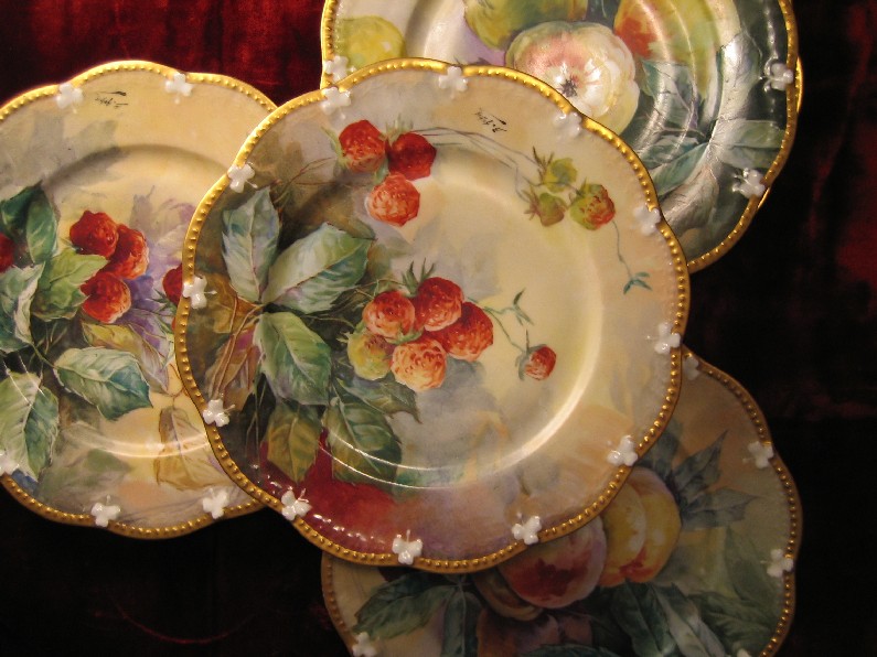 6 assiettes en parfait état à décor de fruits;Elles sont datées 1904 :2 avec fraises, ... |