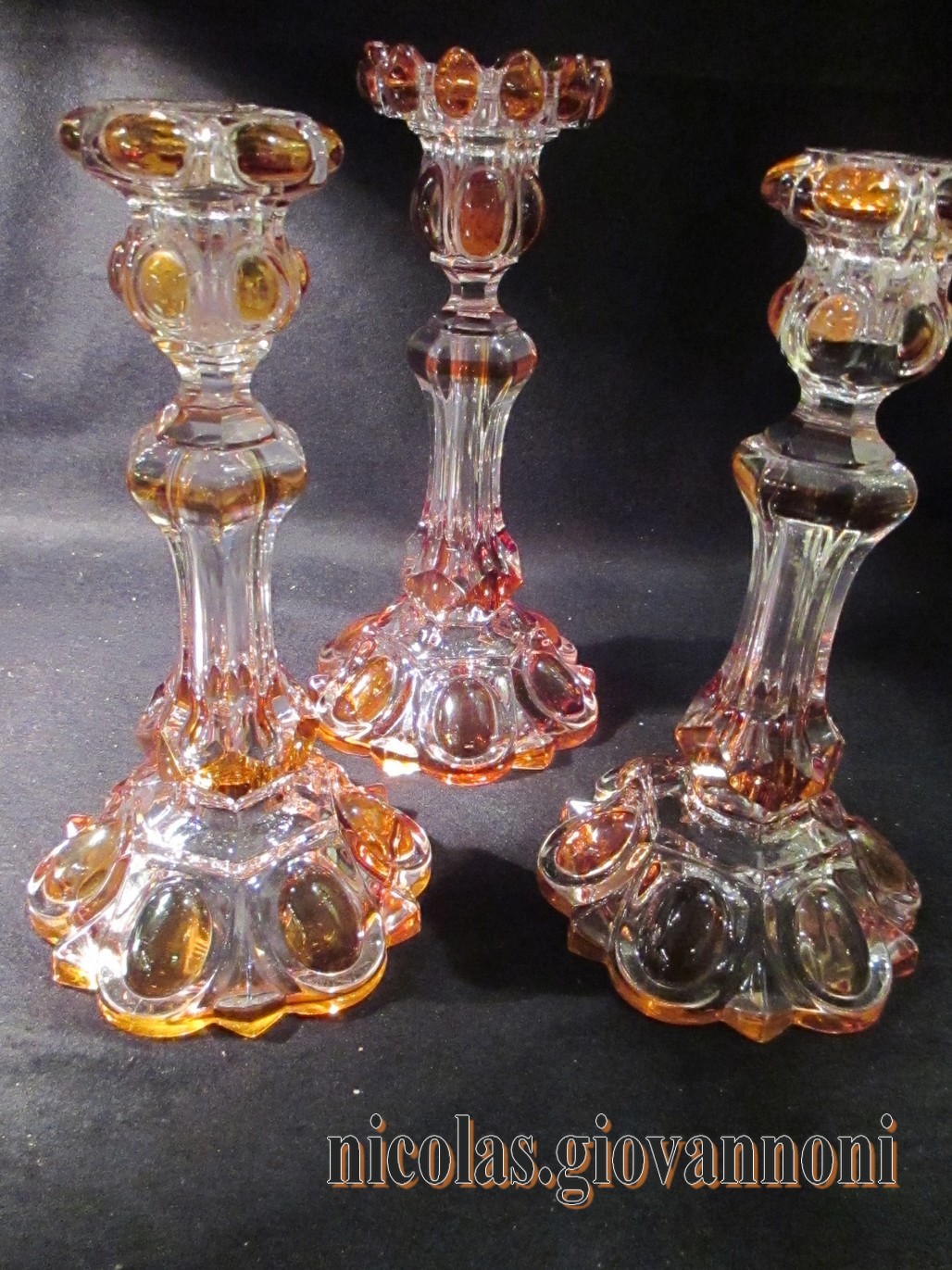Cristal 19 ème siècle - Cristal doublé Ambre - 3 bougeoirs | |