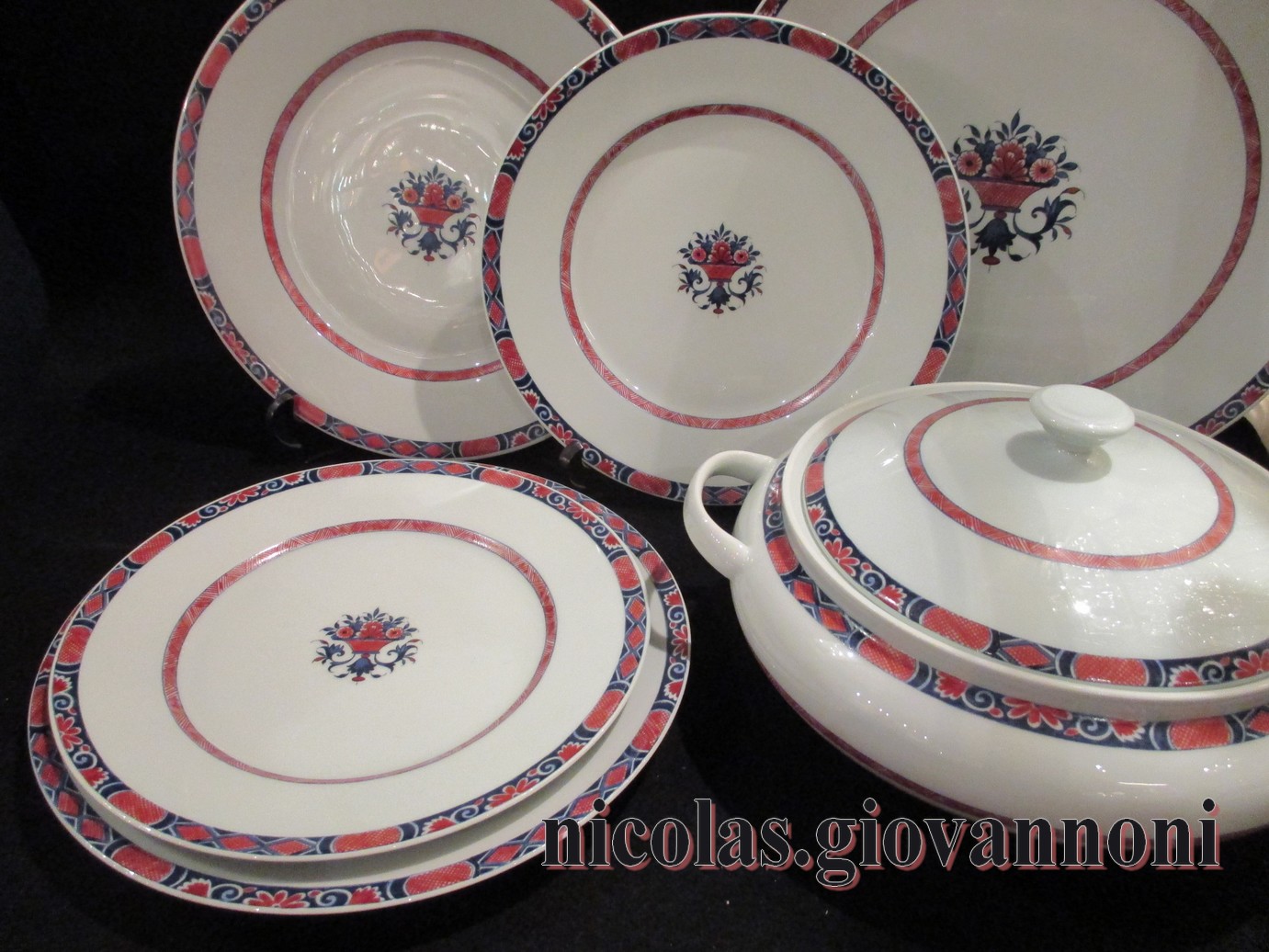 34 assiettes plates, 12 creuses,16 dessert, soupière, légumier, saladier, 2 plats ronds, ... |