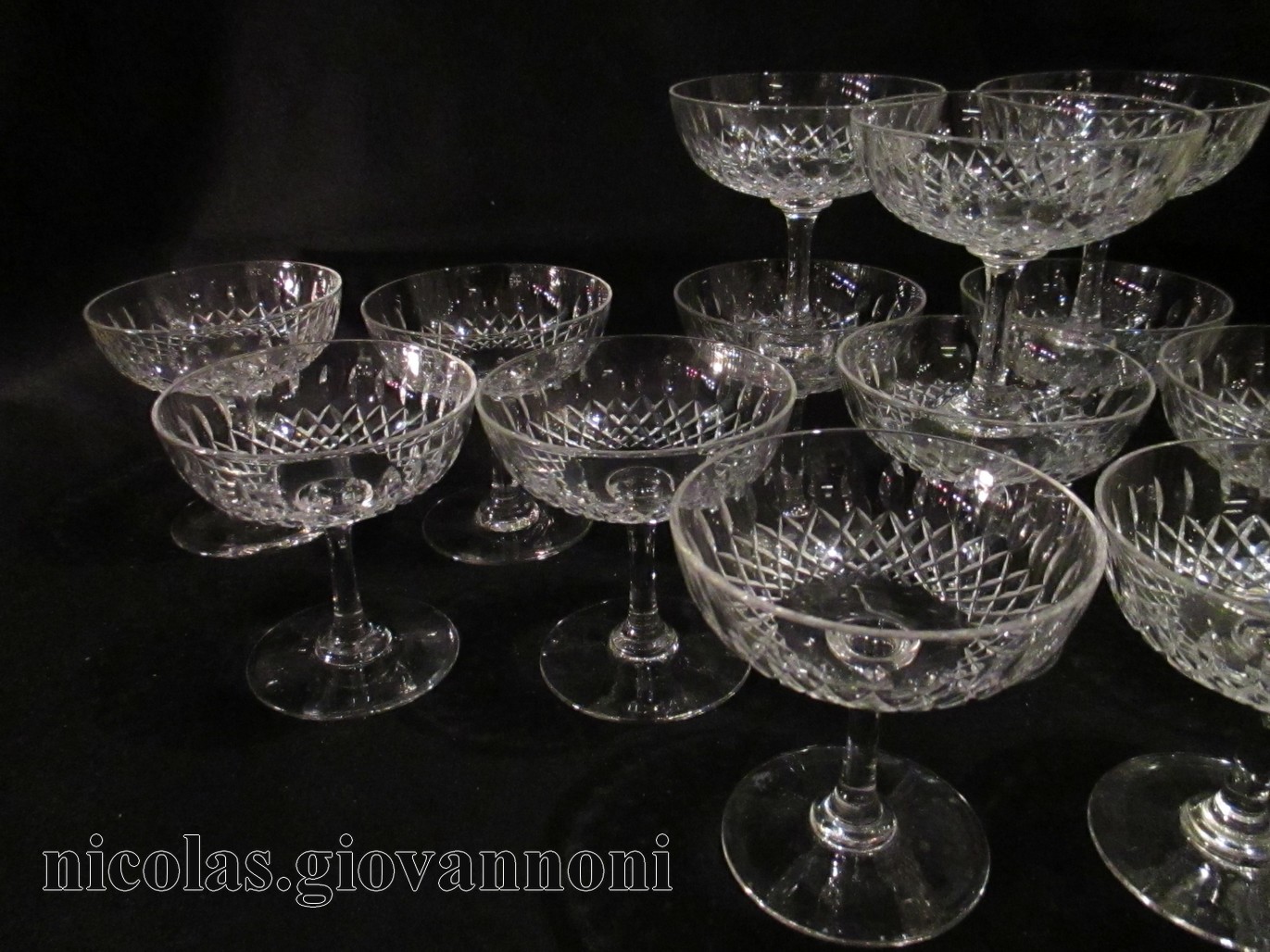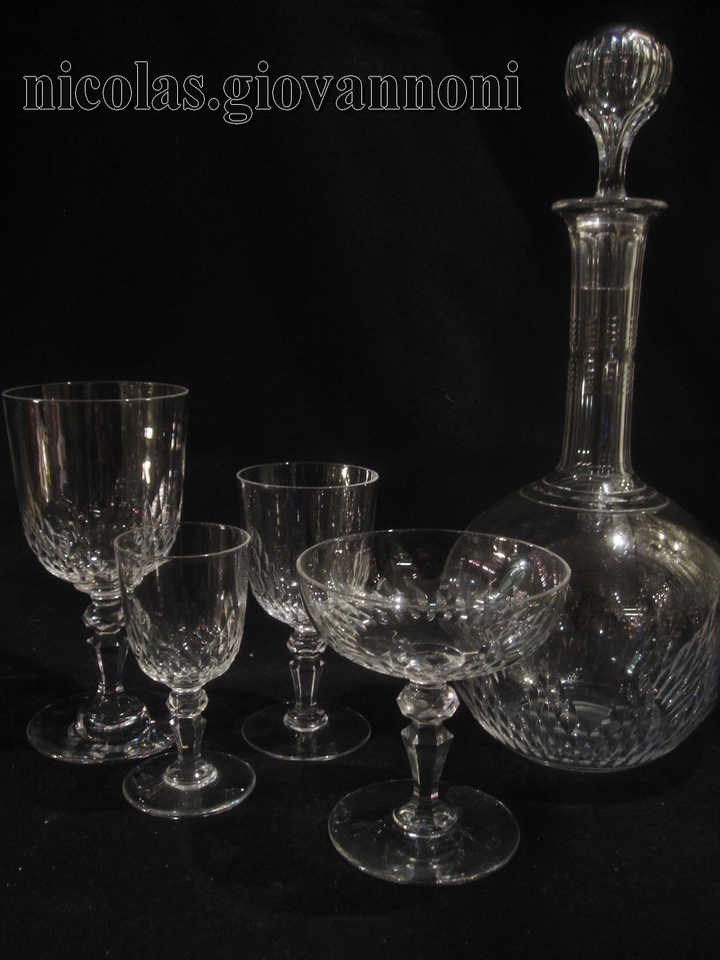 30 verres à eau, 28 vin rouge, 22 vin blanc, 18 coupes, 2 carafes. Très beau travail de ... |