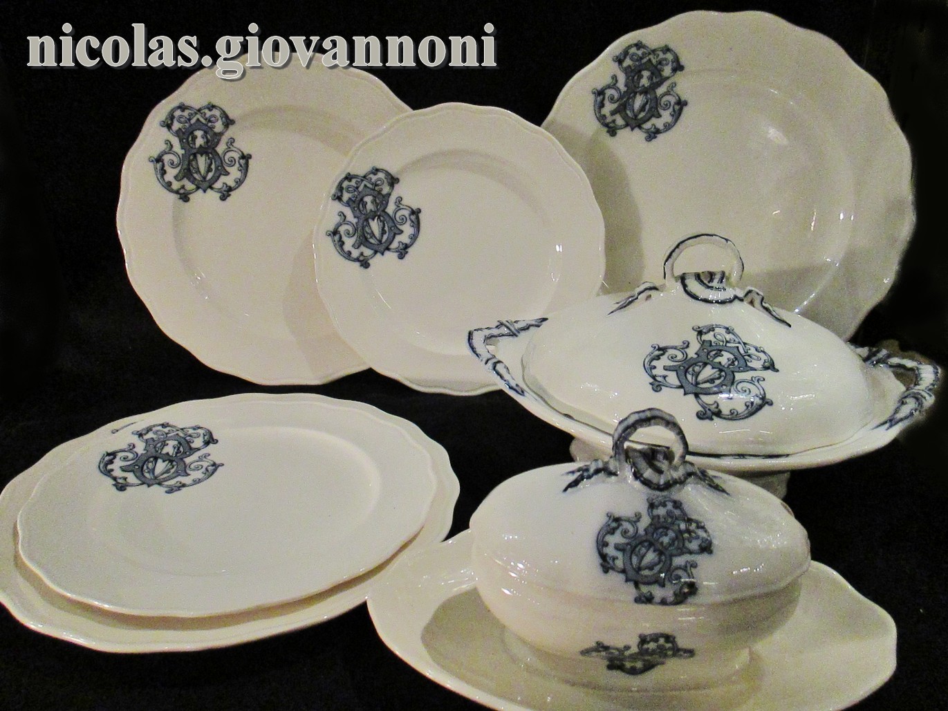 50 assiettes plates, 32 dessert, légumier, saladier, 2 saucières, 4 plats ronds, 1 ovale ... |