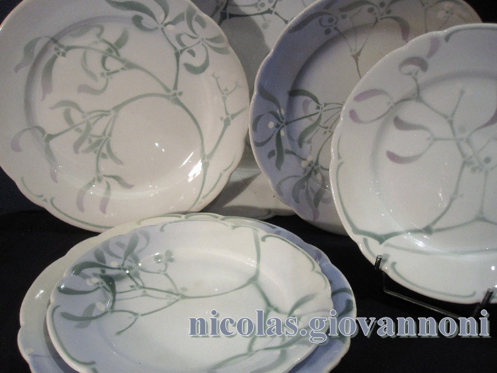 Luneville - Lachenal. Décor au Gui - Partie de service.Art Nouveau | |