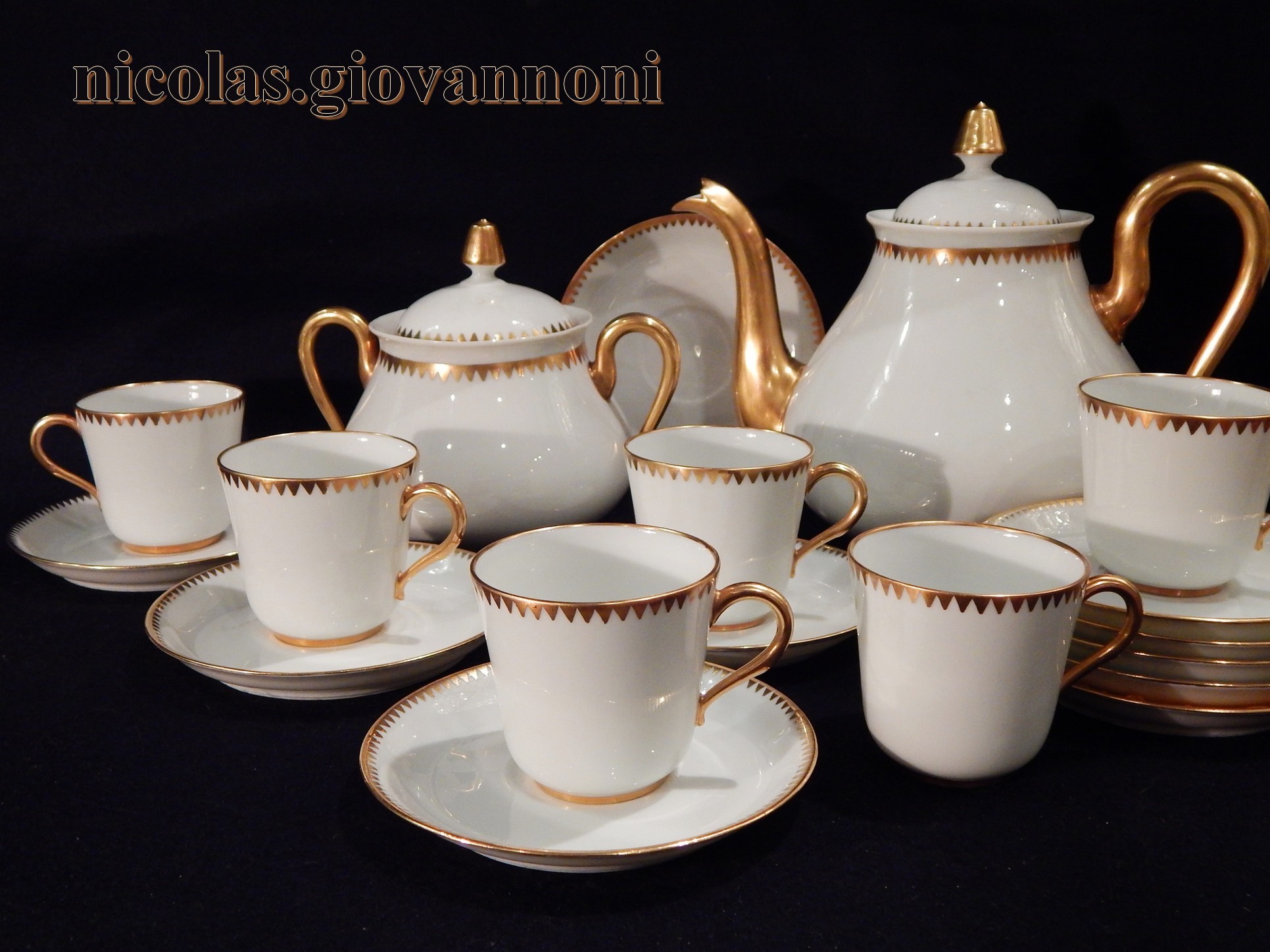 Cambet.Lyon - Décor dents de loup. - 12 tasses, verseuse,sucrier. | |