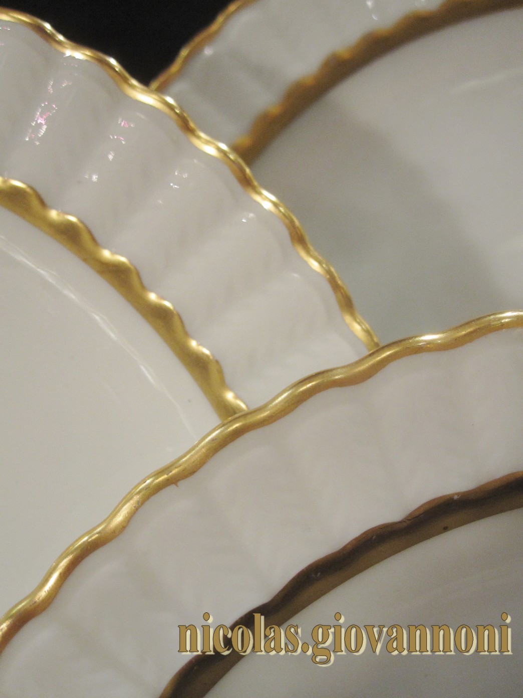 42 assiettes plates, 15 Ã entremets, 30 Ã dessert. Belle application d'or en bandeau ... |