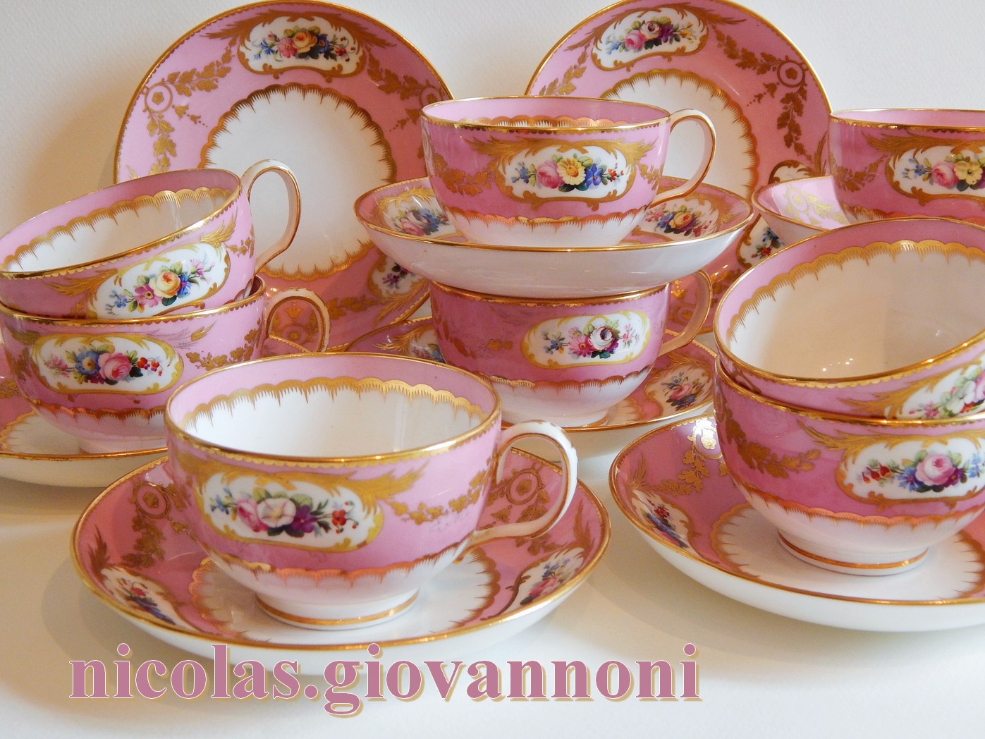 Pellat & Woods.London - Décor Sèvres rose - 15 tasses à thé. English porcelain | |