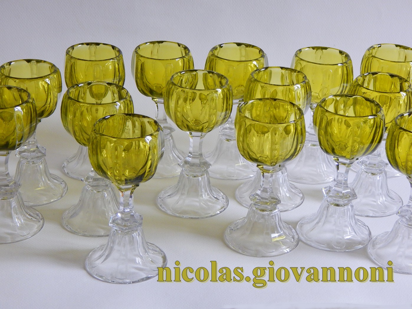 SAINT LOUIS - Cristal doublé taillé - 15 roemers vert mousseline | |