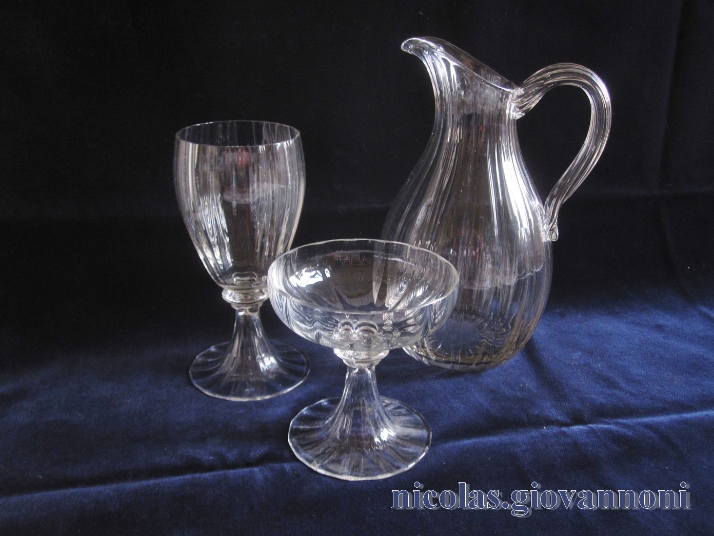 DAUM - Modèle vénitien.1900 - 16 verres à eau, 15 coupes, 2 brocs | |