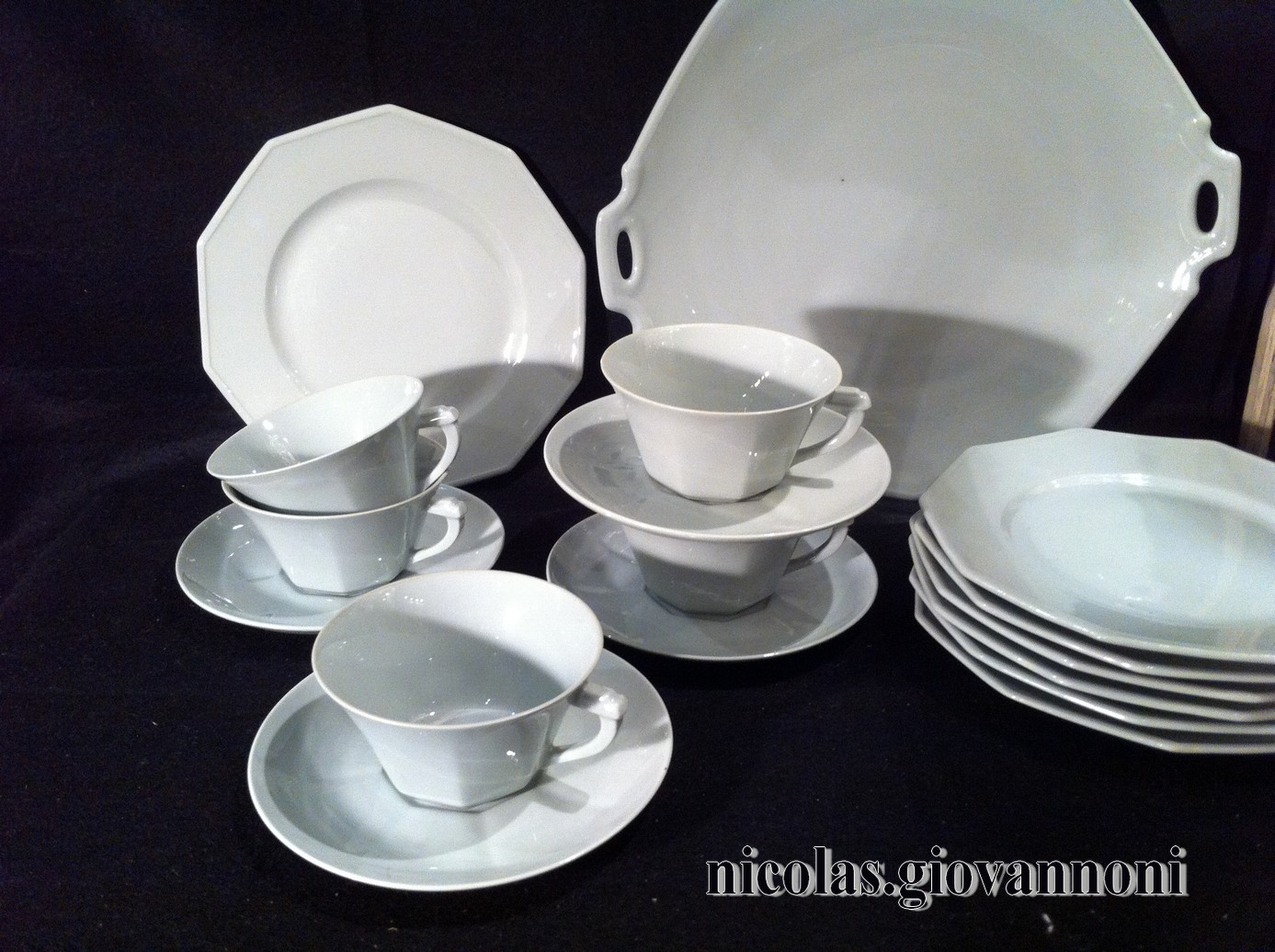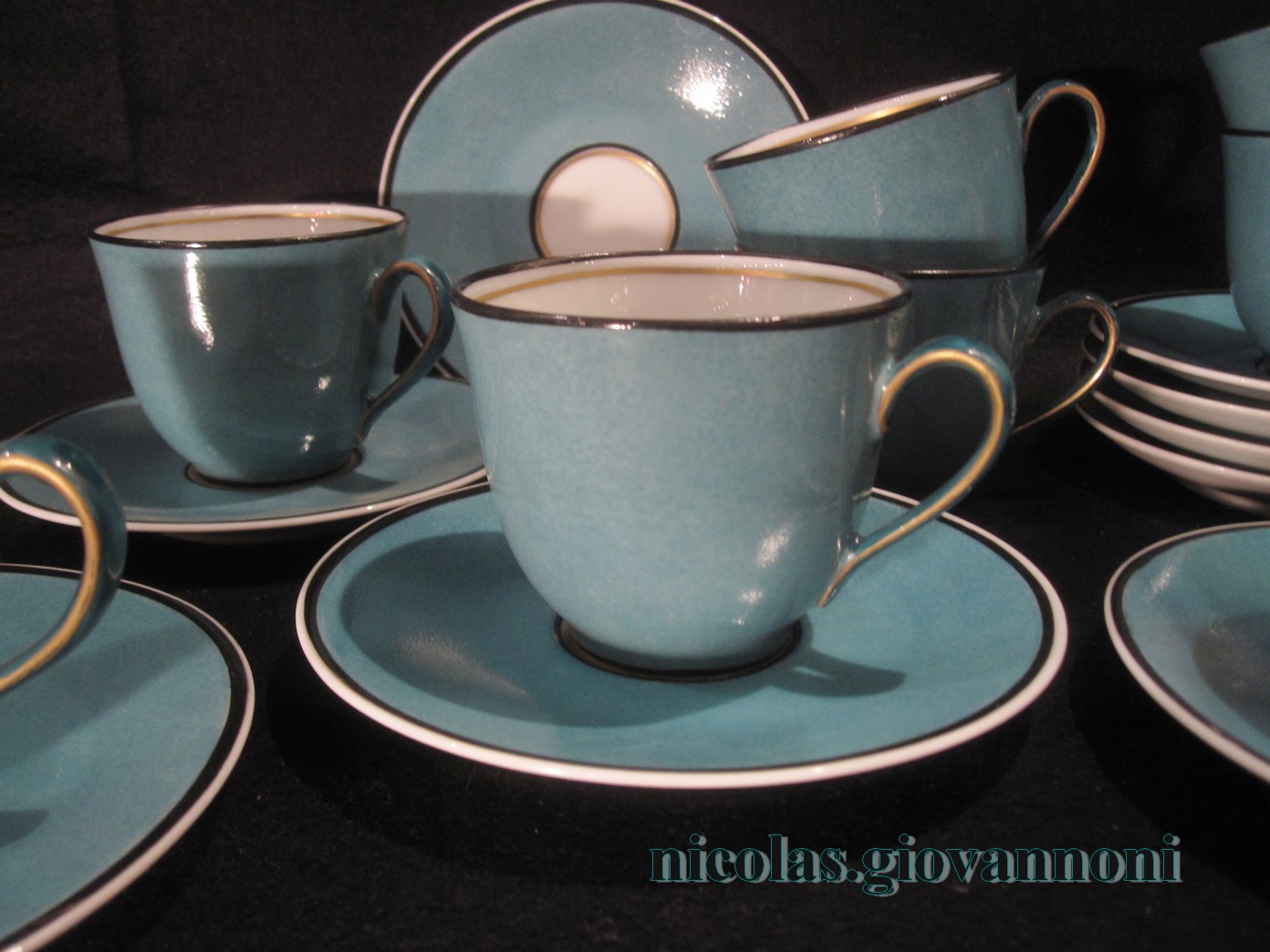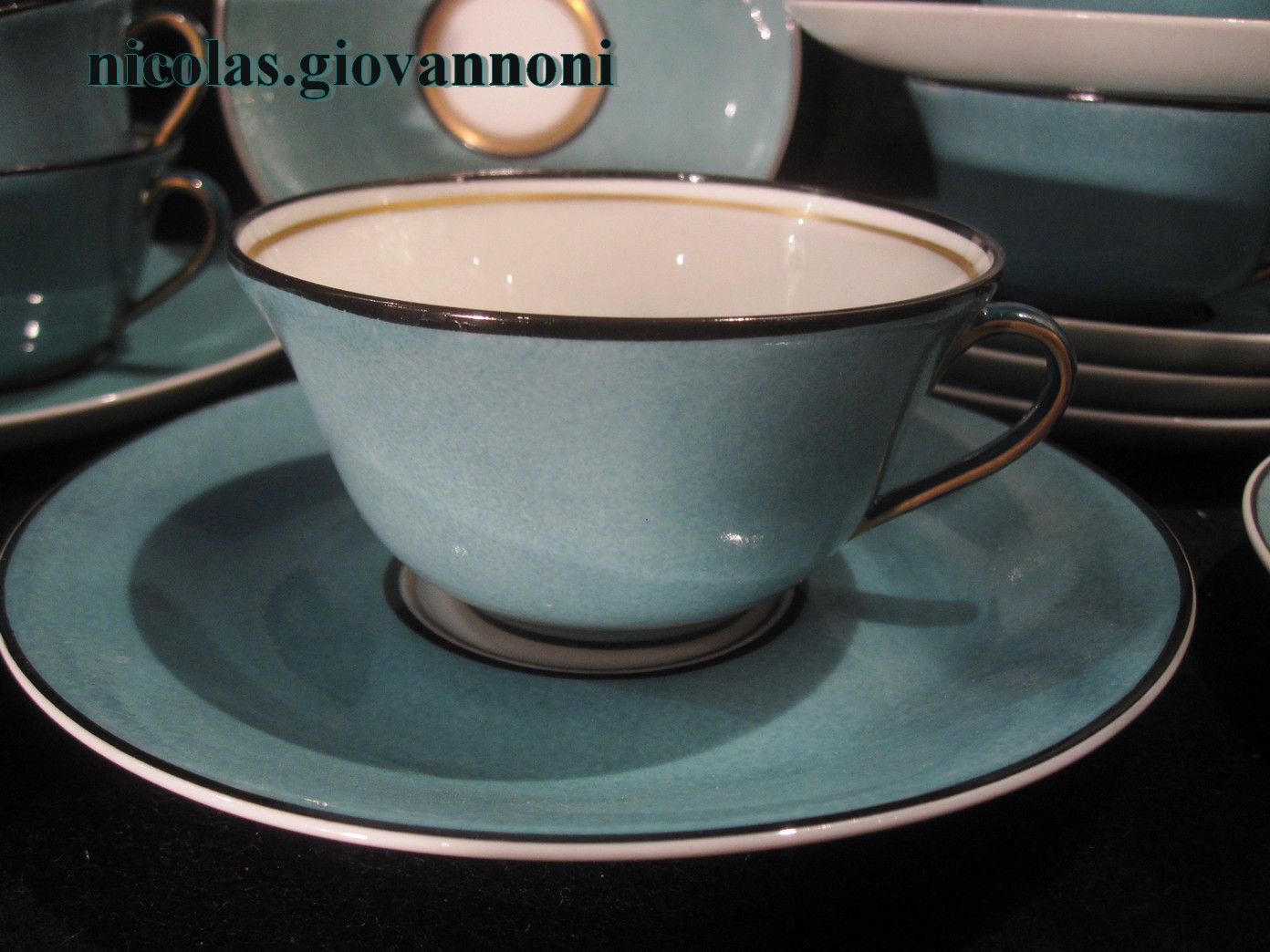 F.R.G Limoges(Frugier René) - Pâte céladon - 8 tasses à thé, assiettes dessert | |