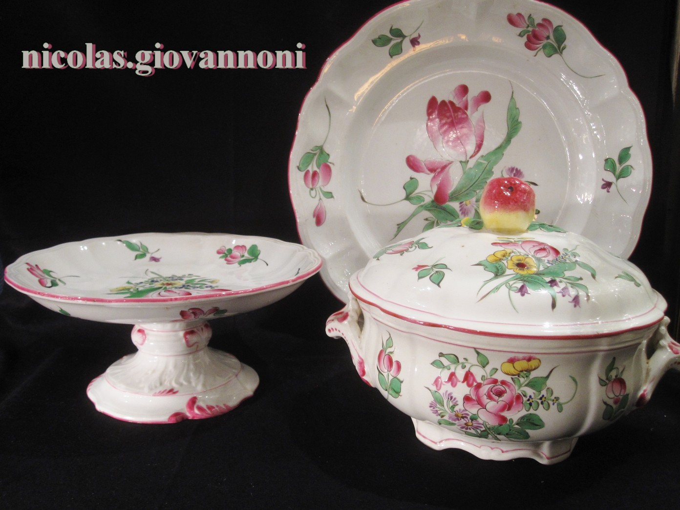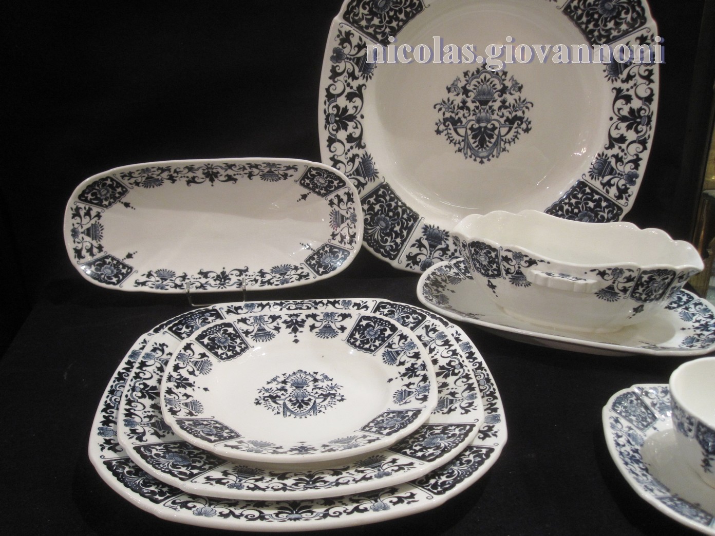 24 assiettes plates, 12 creuses, 12 entremets, 12 dessert, soupière, légumier, saladier, ... |