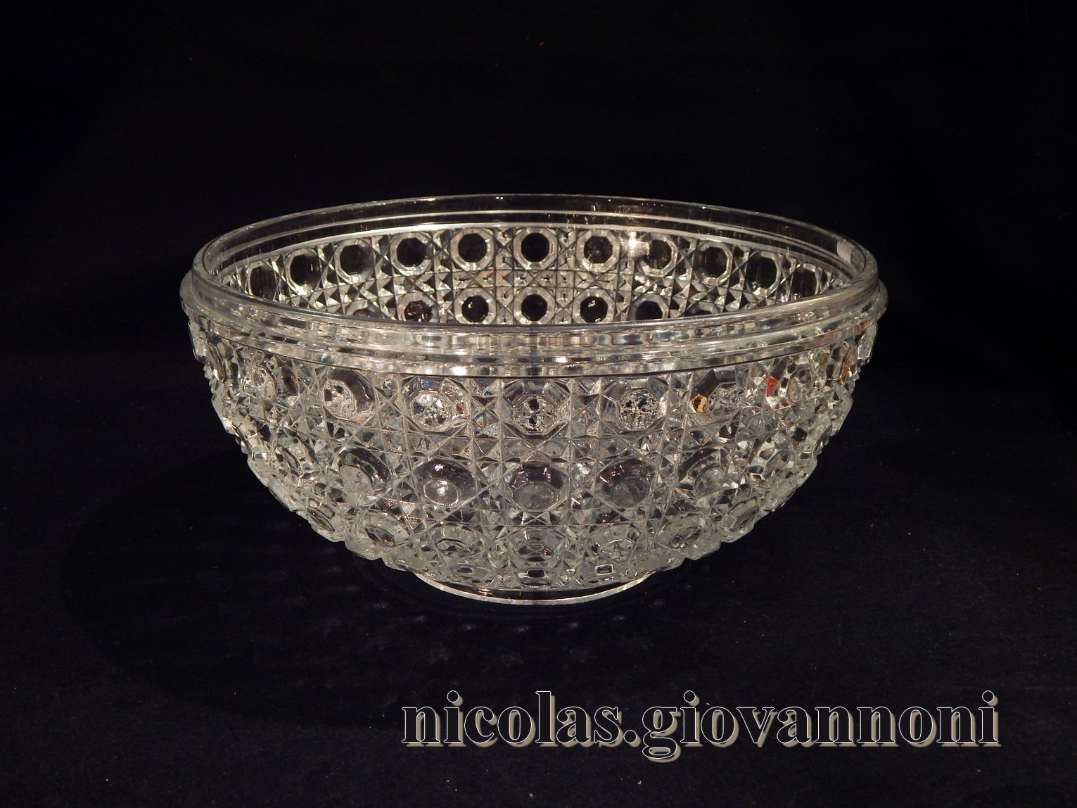 Grande jatte en cristal à décor moulé de pointes de diamant. Belle luminosité de la ma ... |