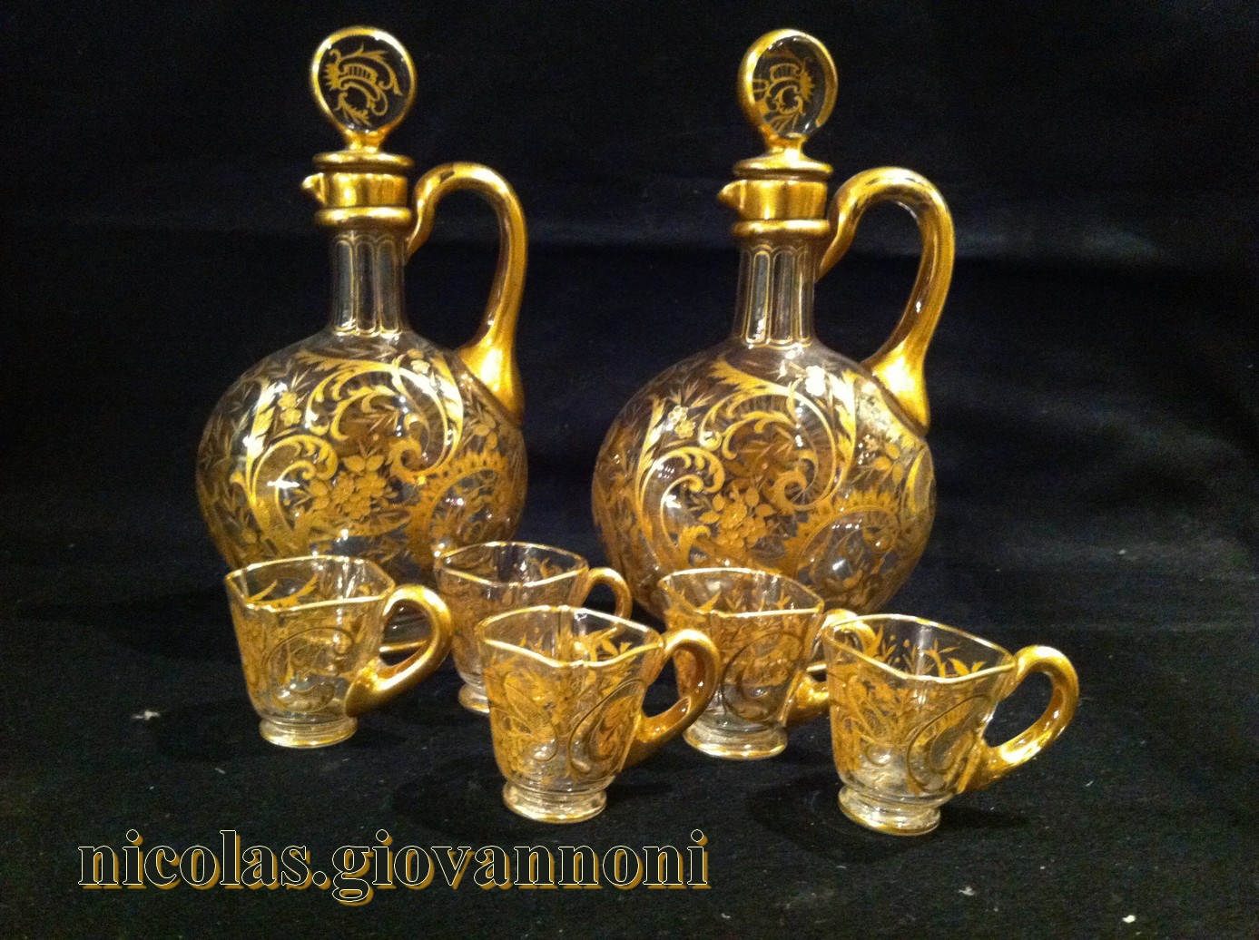 BACCARAT - Cristal taillé et doré - Service à liqueurs. Fin 19ème | |