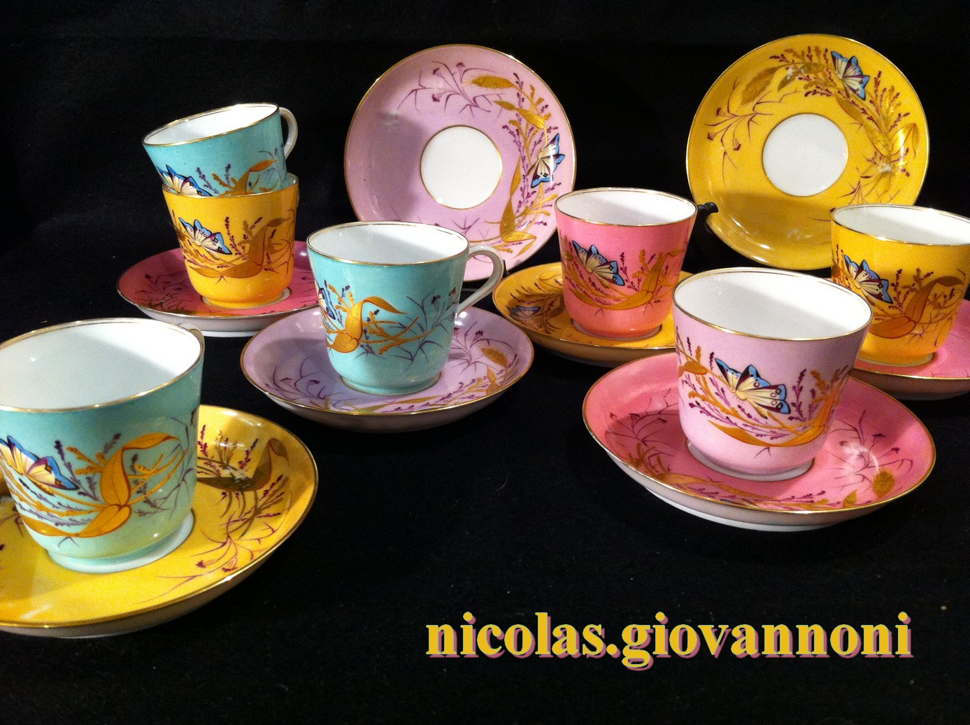 H.Vignier.Porcelaine de Paris - Décor papillon.1890 - 11 tasses à café | |