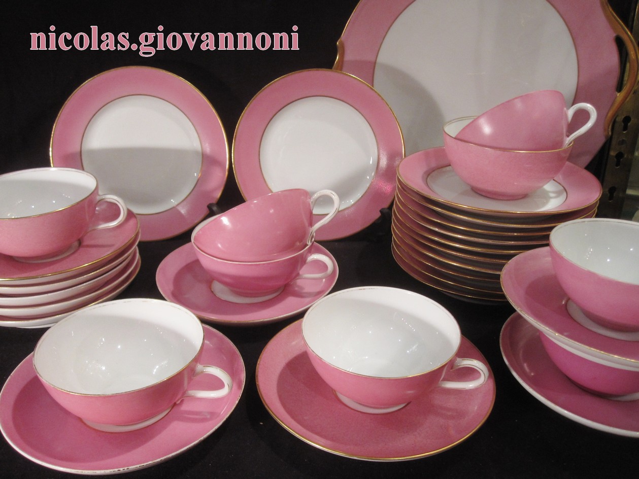 Limoges - Porcelaine rose - 9 tasses, 12 assiettes à dessert | |
