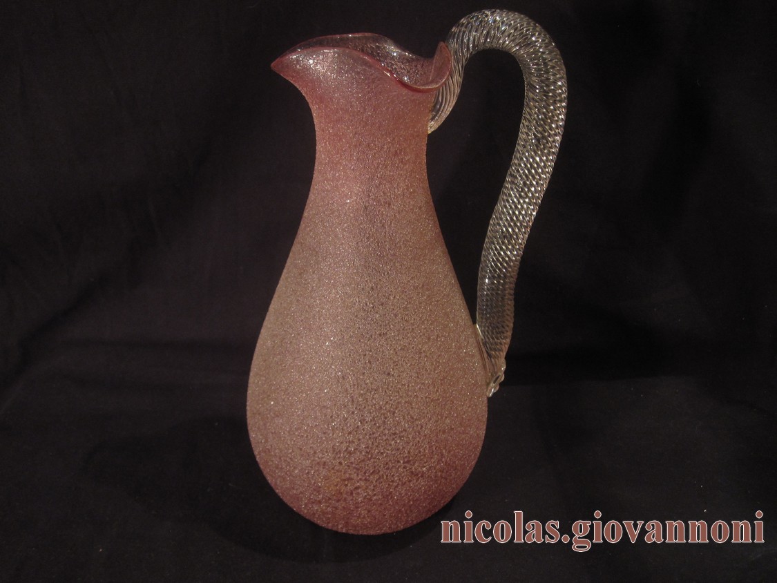 Baccarat. - Cristal givré rose - Broc à orangeade | |