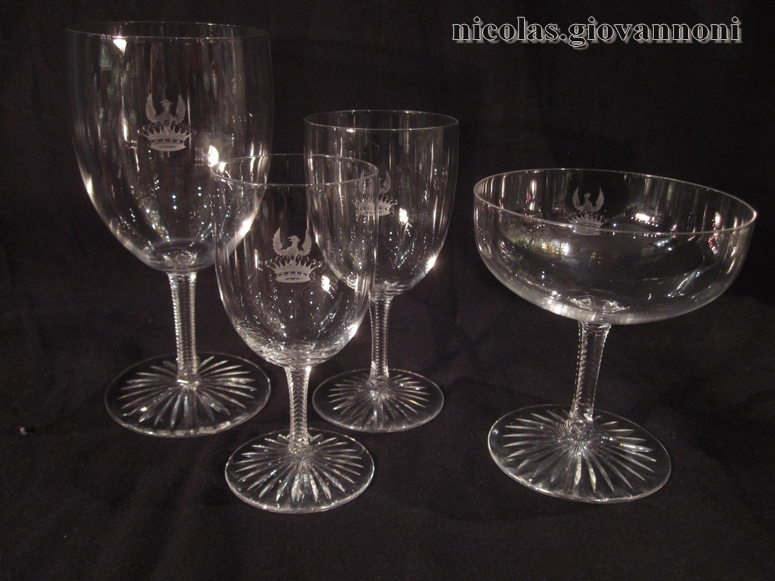 22 verres à eau, 16 à vin rouge, 6 vin blanc, 18 coupes à Champagne, 3 carafes. Crista ... |