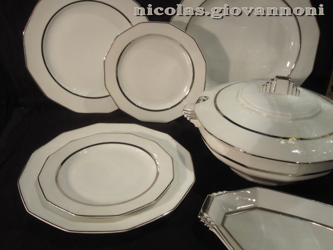 Bernardaud & Cie - Filet platine.1930 - Service 54 pièces | |